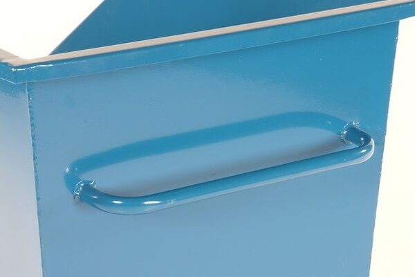 See kallur on valmistatud vastupidavast pulbervärvitud metallist, mille tugevdatud servadega konteiner on vastupidav ja tugev.