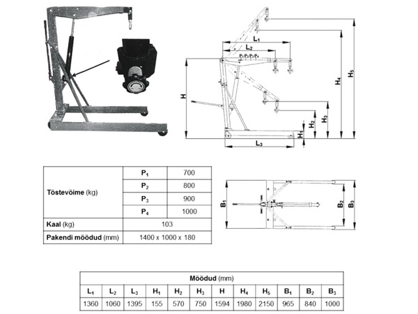- Maks. tõstejõud : 1000 kg